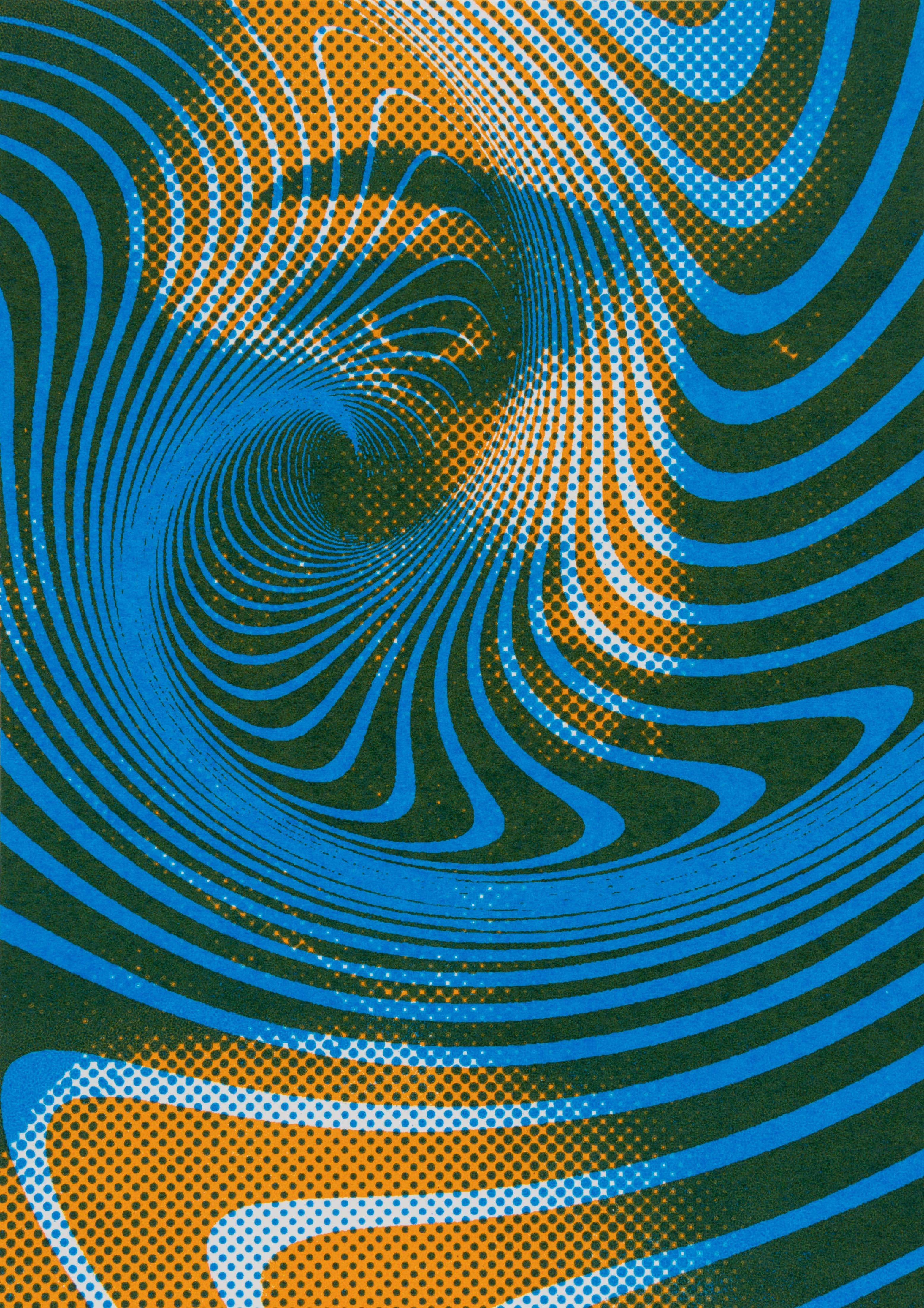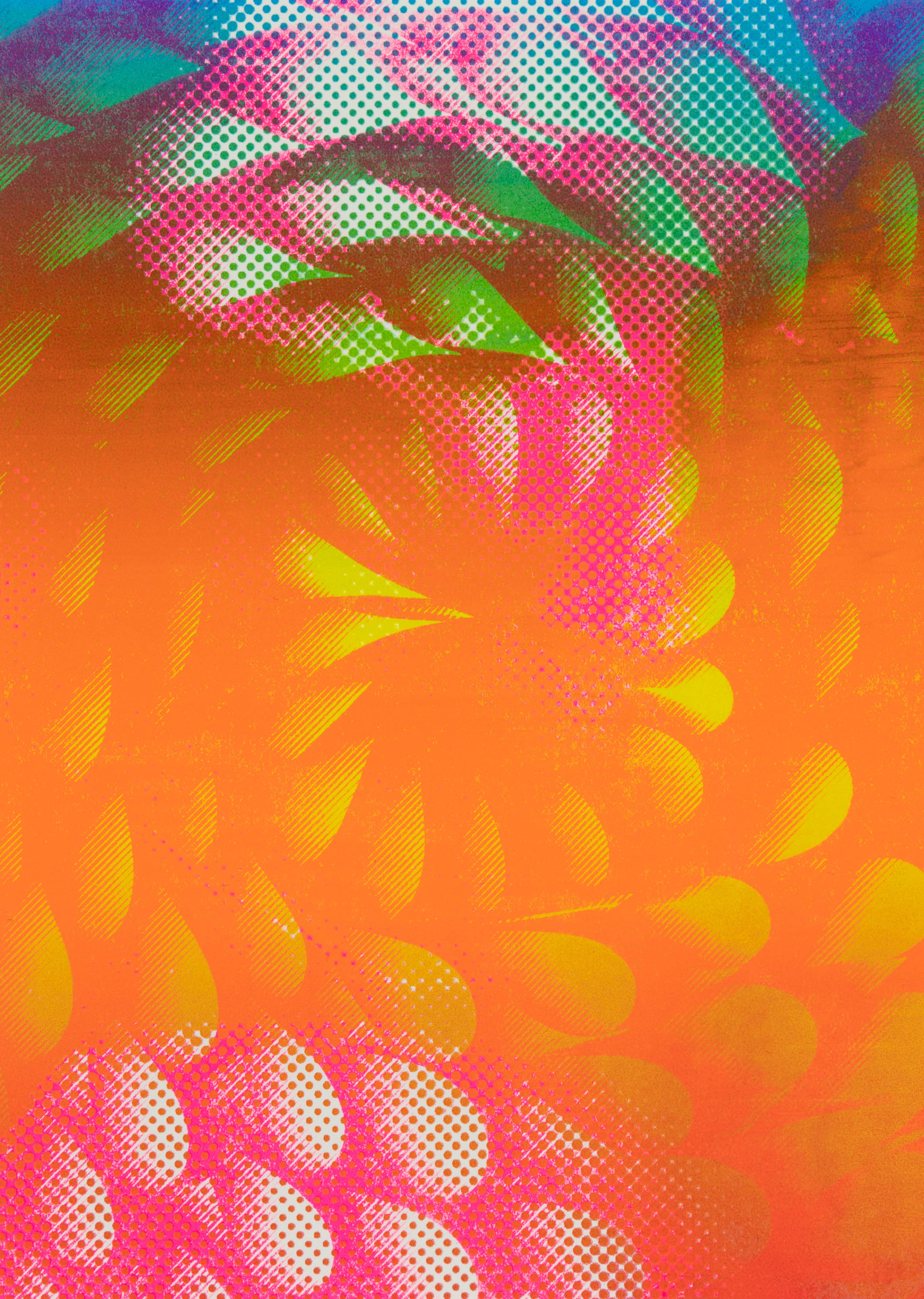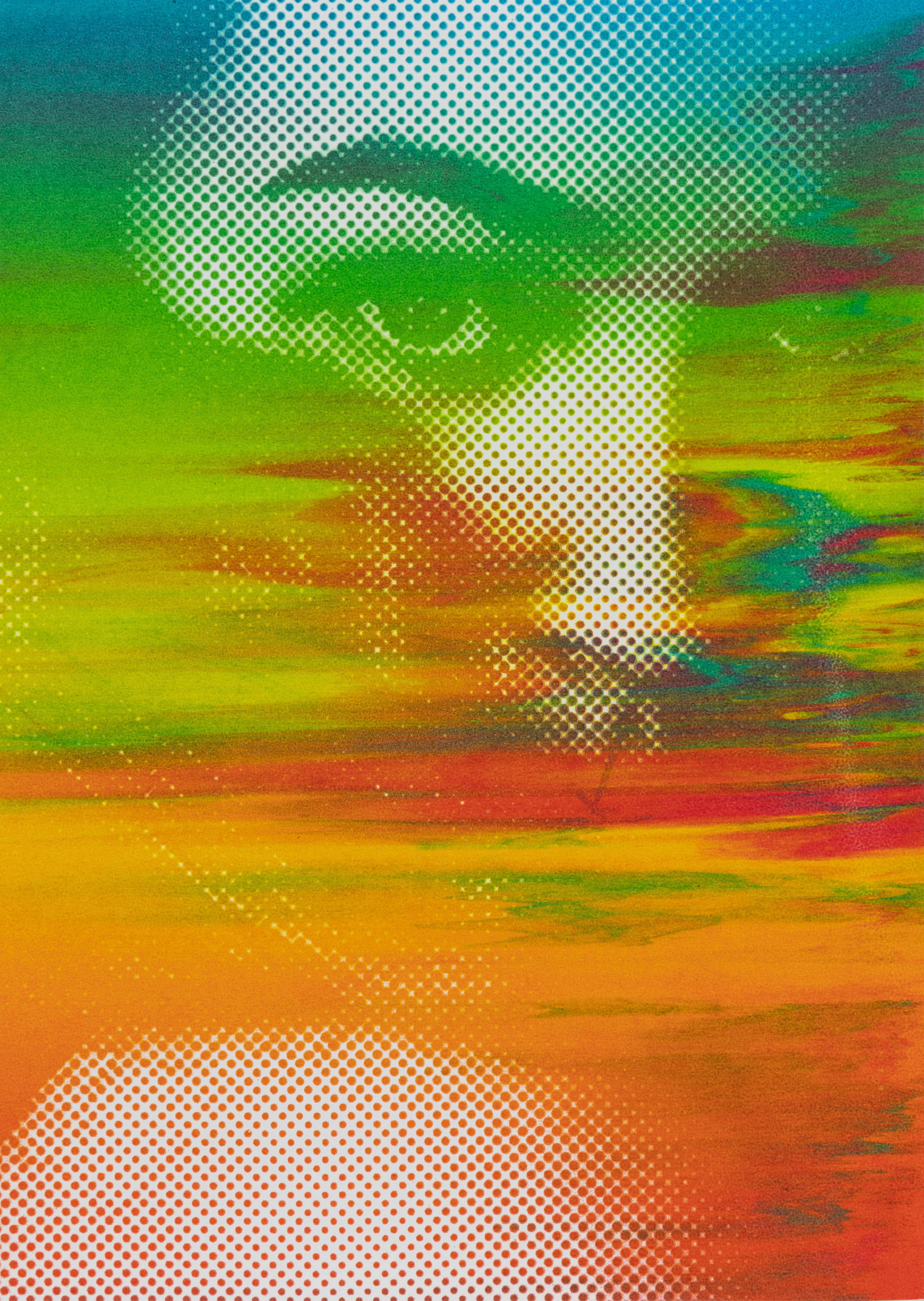 I worked in a team of two on the creative expression possibilities of screen and offset printing. With two self-selected pictures I printed postcards in A5 format. To distinguish the two pictures, I put them each in two different bitmap grids. I experimented with all kinds of colours and always came up with fascinating results. In the portfolio I limited myself to my personal favourite and presented it with repros.