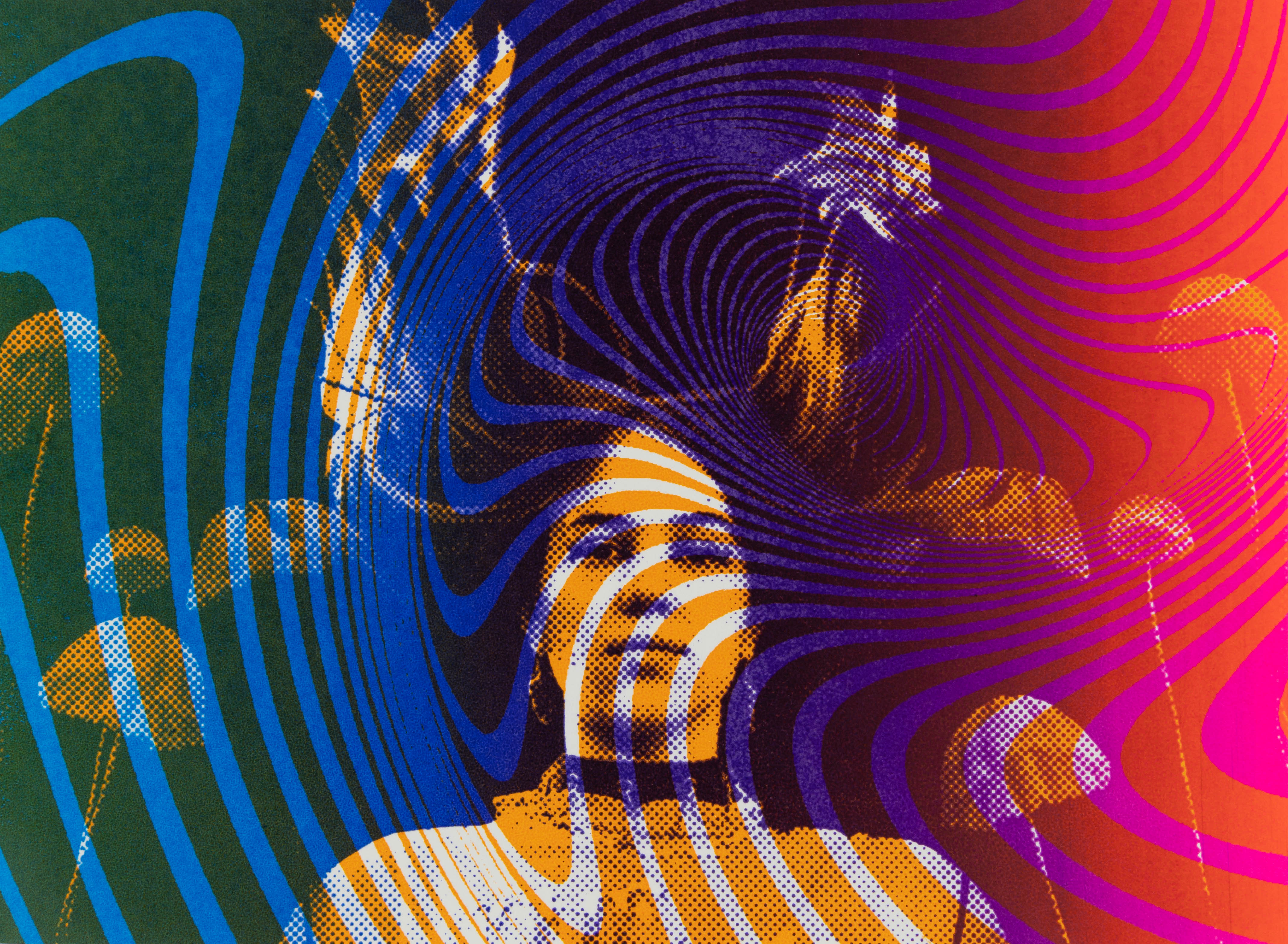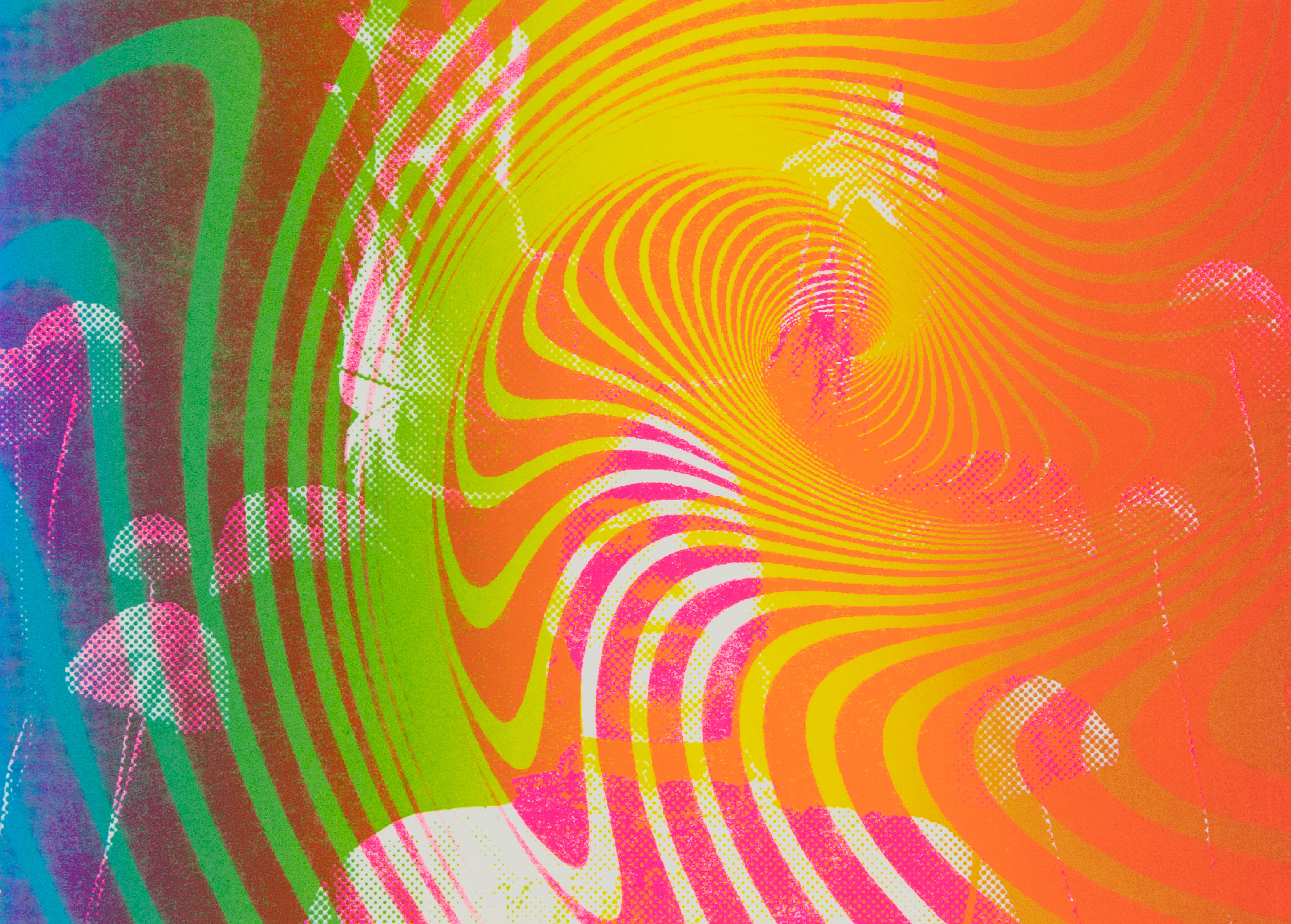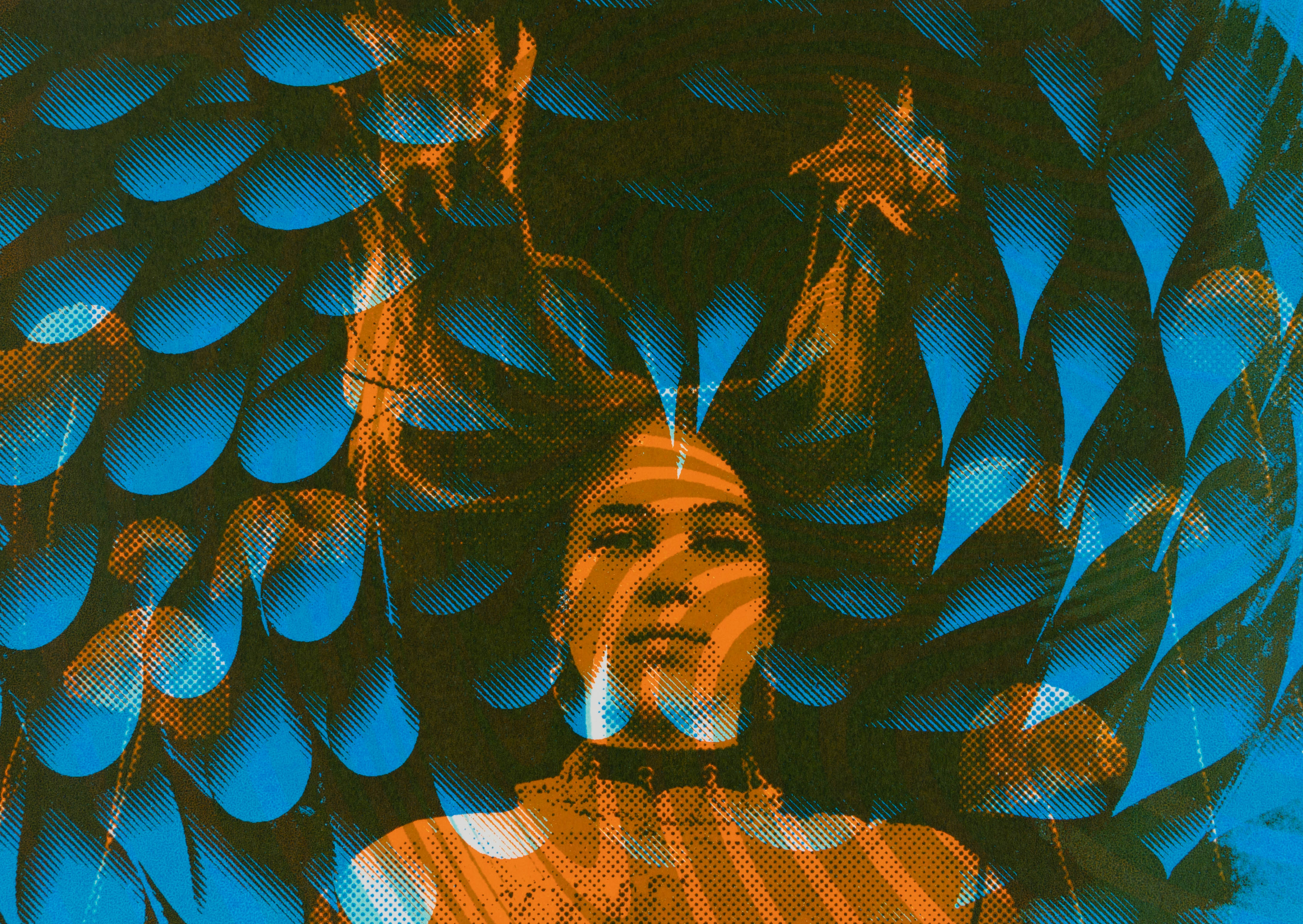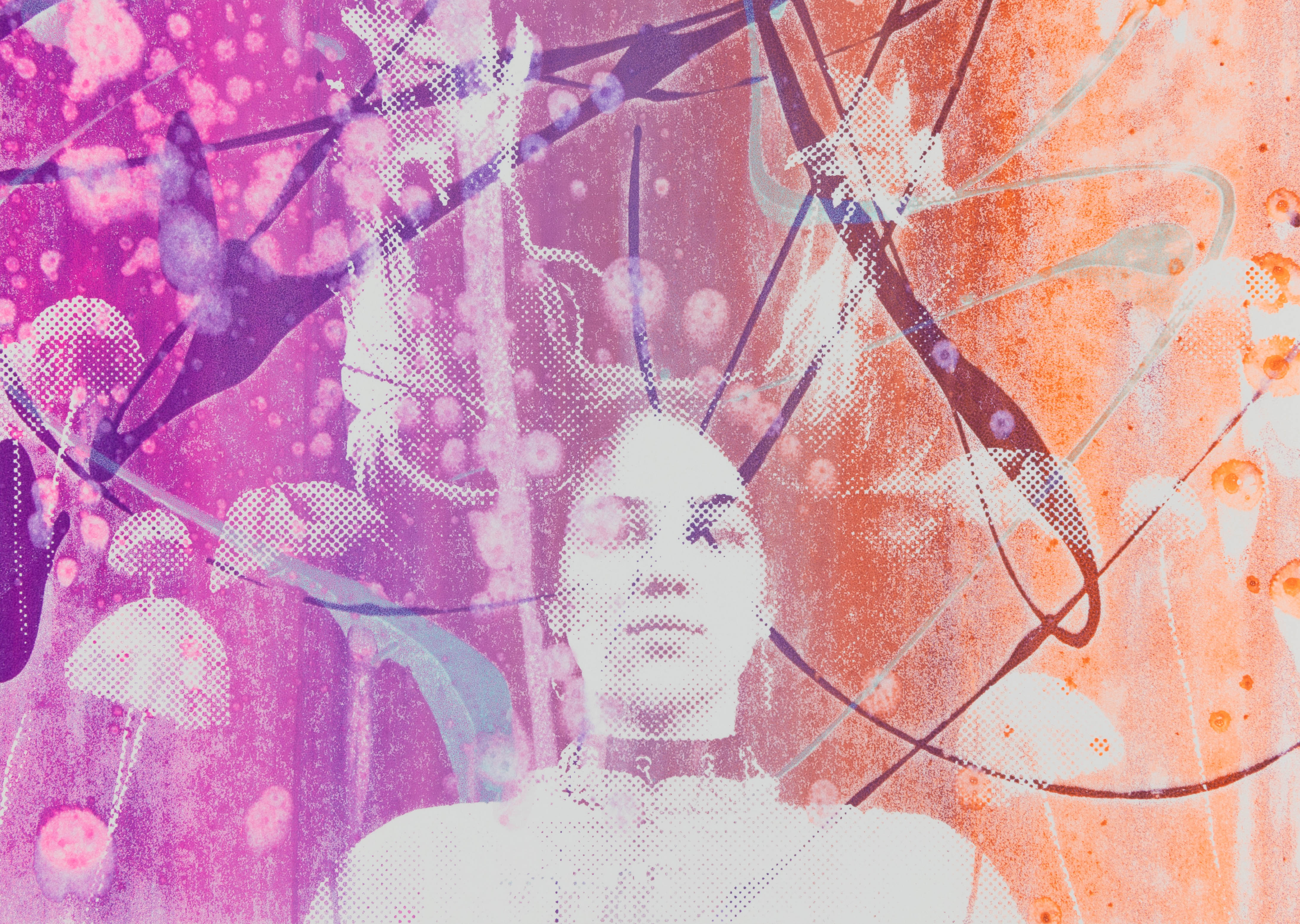 I worked in a team of two on the creative expression possibilities of screen and offset printing. With two self-selected pictures I printed postcards in A5 format. To distinguish the two pictures, I put them each in two different bitmap grids. I experimented with all kinds of colours and always came up with fascinating results. In the portfolio I limited myself to my personal favourite and presented it with repros.