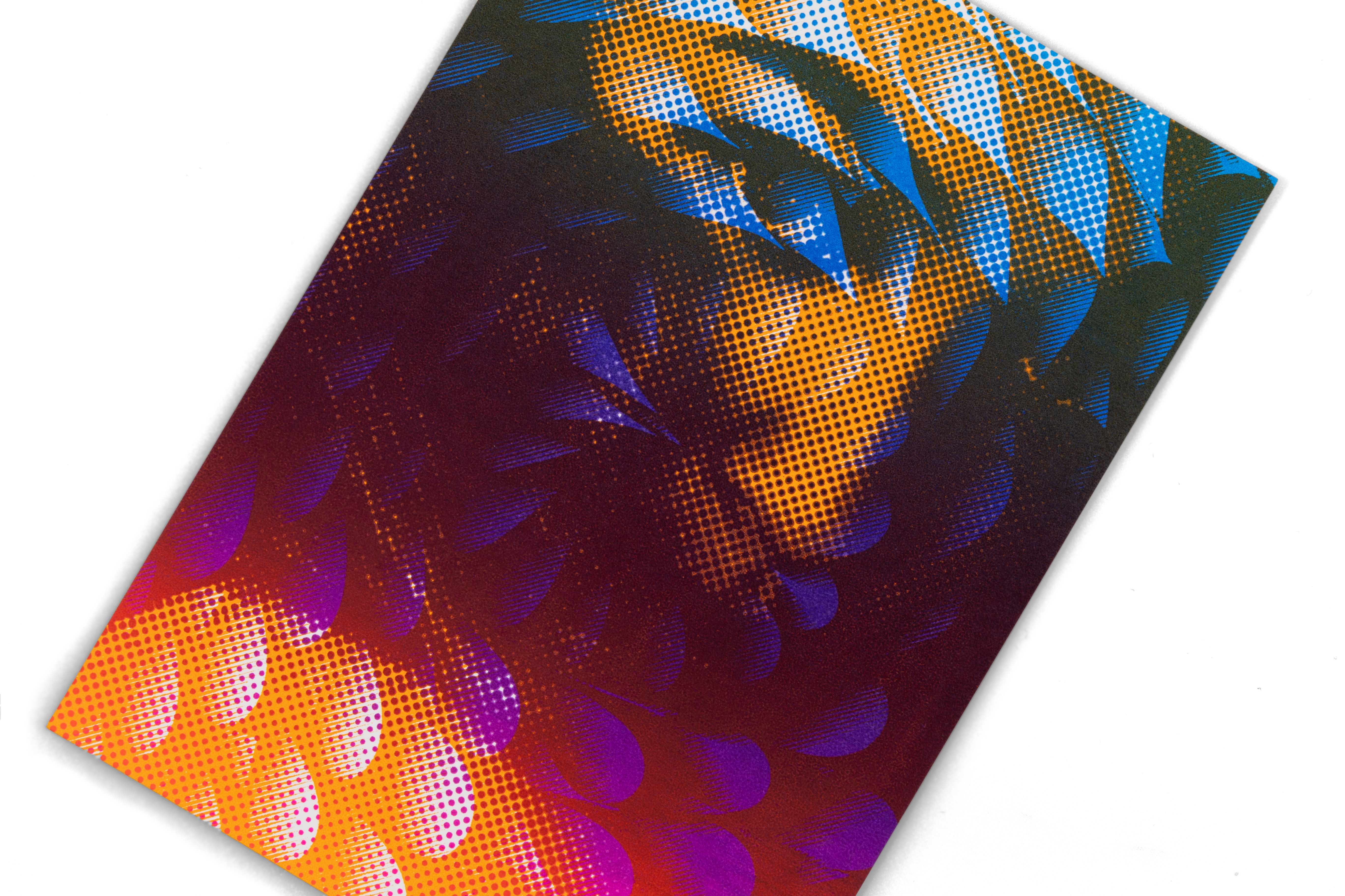 Sieb- und Offsetdruckes. Mit zwei selbstausgewählten Bildern druckte ich Postkarten im Format A5. Um die